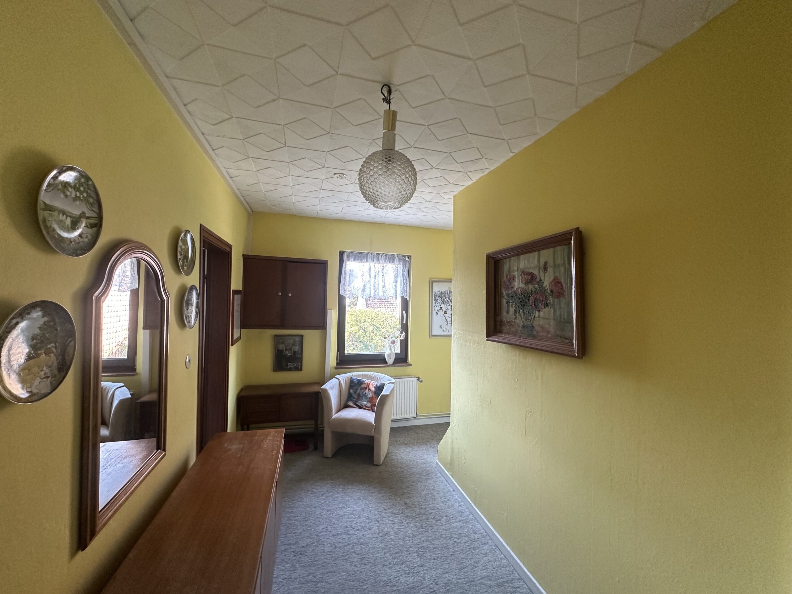 Mit insgesamt 11 Zimmern eröffnen sich hier zahlreiche Möglichkeiten, ob als großzügiges Zuhause für eine Familie, für mehrere Generationen unter einem Dach oder mit zwei separaten Wohneinheiten. Das Haus wirkt dabei nicht nur großzügig, sondern auch angenehm lebendig, mit einer Aufteilung, die über viele Jahre hinweg echtes Wohnen möglich gemacht hat.