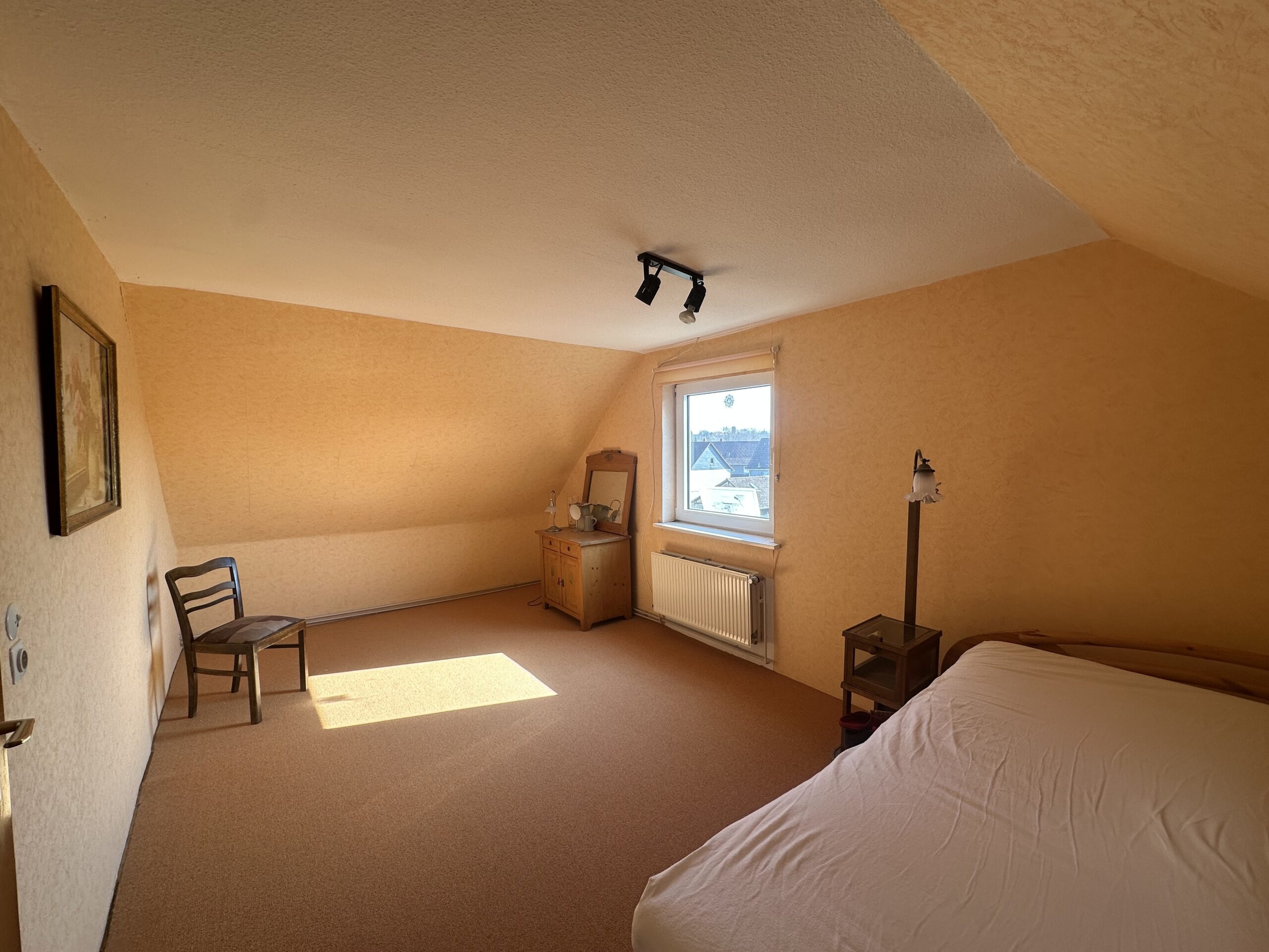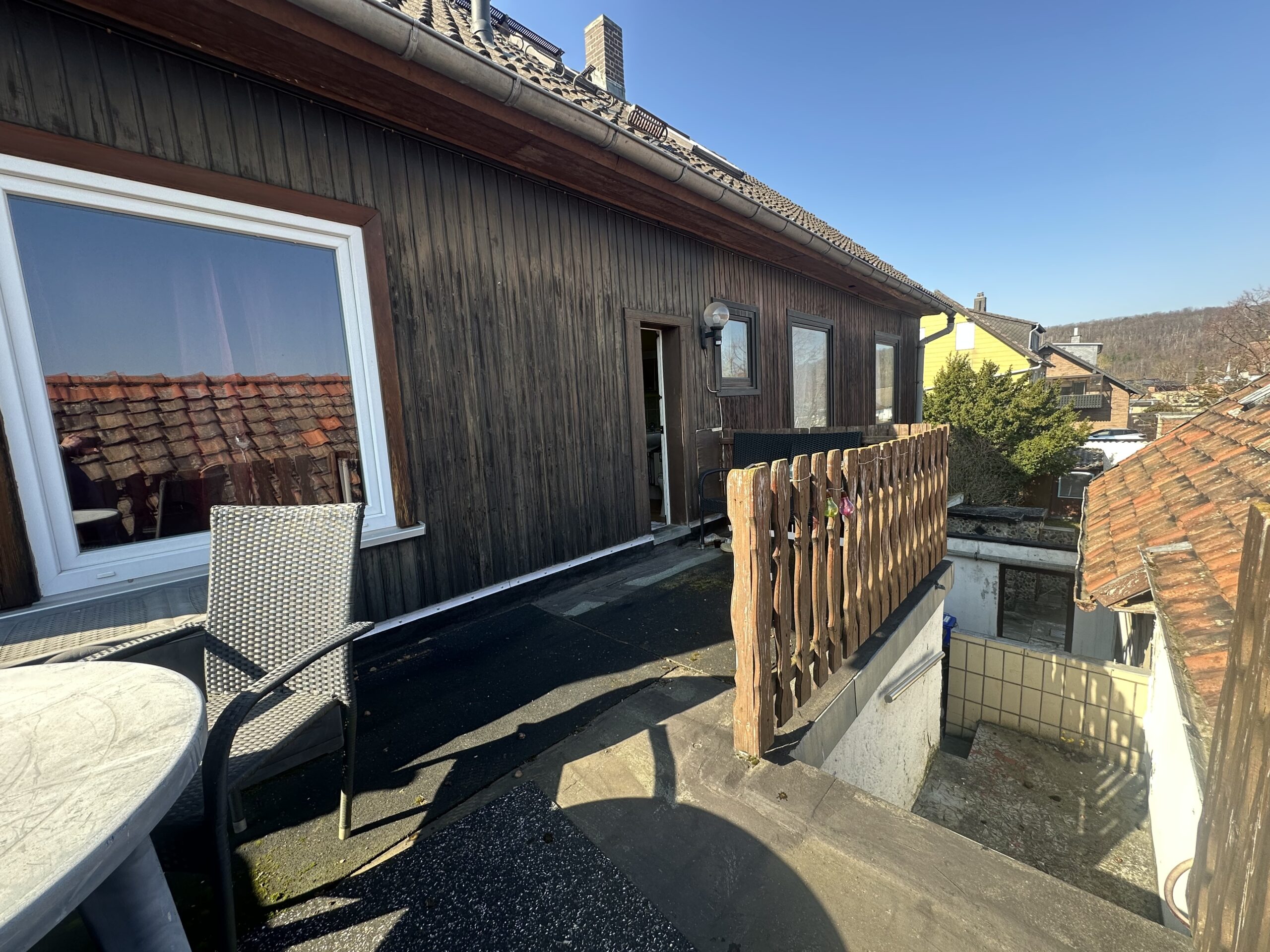 Auch der Balkon mit direktem Zugang in den Garten verbindet das Haus auf angenehme Weise mit dem Außenbereich und unterstreicht den wohnlichen Charakter der Immobilie. Insgesamt präsentiert sich hier ein Haus mit viel Platz, viel Grundstück und einer Ausstrahlung, die man nicht planen kann, sondern die mit den Jahren entsteht.
